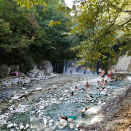 Бујната вегетација и раскошната природа на планината Версас (Кајмакчалан) даваат чуство на за посебен мир. Карпестиот предел на бели карпи кој се протега над вас, кога ќе погледнете нагоре, ја дава убавината и чуството како да се наоѓате во некоја дупка на рајот. Реката Термопатанос (топла река), во која течат 2 различни стуи на вода, кој се една до друга а не се мешаат, е чудо на природата. Едната ладна и до самото корито топла вода која достигнува и до 37с/ц, се прекрасно уживање за кардио вежби. Во делот на топлата вода се наоѓаат 3 природни базени со посебна масажа од водата која паѓа од височините на карпите, а во горниот дел има голем отворен базент со минерална вода од 37с/ц, кој дава посебно уживање за пливачите. На стараничните делови на реката се наоѓаат места за пикник под сенка за целодневно уживање, а покрај базентот има и ресторант со разновидно мени на храна и пијалоци.
